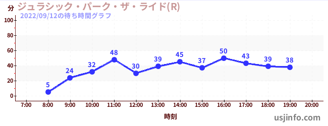 • ジュラシック・パーク・ザ・ライド(R)$B$N(B2022年09月12日の待ち時間