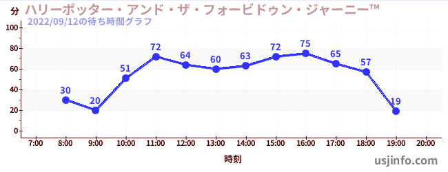 • ハリーポッター・アンド・ザ・フォービドゥン・ジャーニー™$B$N(B2022年09月12日の待ち時間