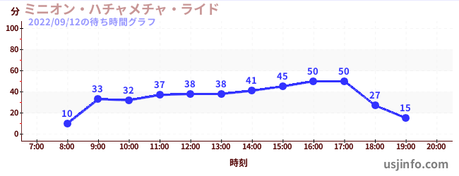 • ミニオン・ハチャメチャ・ライド$B$N(B2022年09月12日の待ち時間