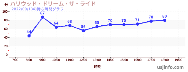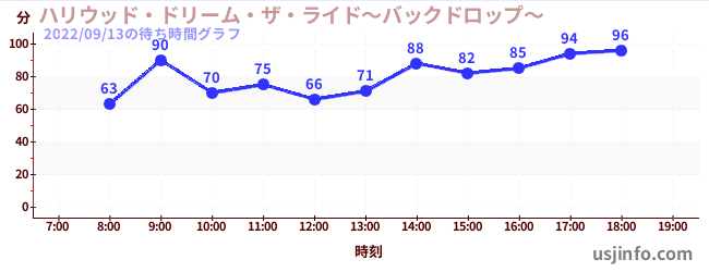 • ハリウッド・ドリーム・ザ・ライド〜バックドロップ〜$B$N(B2022年09月13日の待ち時間