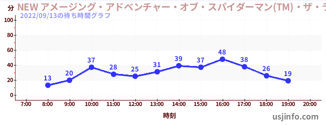 • NEW アメージング・アドベンチャー・オブ・スパイダーマン(TM)・ザ・ライド 4K3D$B$N(B2022年09月13日の待ち時間