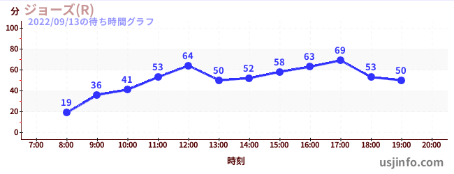 • ジョーズ(R)$B$N(B2022年09月13日の待ち時間