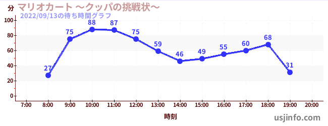• マリオカート ~クッパの挑戦状~$B$N(B2022年09月13日の待ち時間