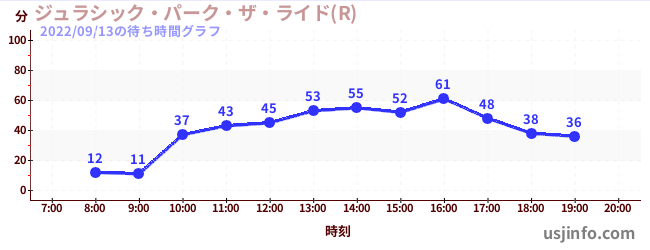 • ジュラシック・パーク・ザ・ライド(R)$B$N(B2022年09月13日の待ち時間