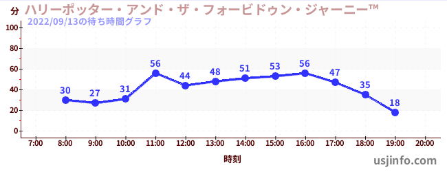 • ハリーポッター・アンド・ザ・フォービドゥン・ジャーニー™$B$N(B2022年09月13日の待ち時間