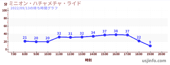 • ミニオン・ハチャメチャ・ライド$B$N(B2022年09月13日の待ち時間