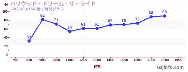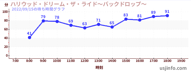 • ハリウッド・ドリーム・ザ・ライド〜バックドロップ〜$B$N(B2022年09月15日の待ち時間