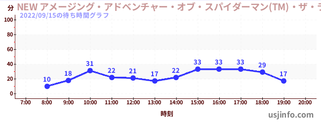 • NEW アメージング・アドベンチャー・オブ・スパイダーマン(TM)・ザ・ライド 4K3D$B$N(B2022年09月15日の待ち時間