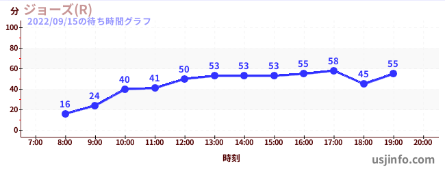 • ジョーズ(R)$B$N(B2022年09月15日の待ち時間