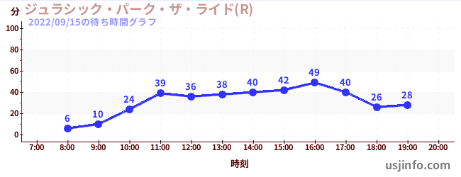 • ジュラシック・パーク・ザ・ライド(R)$B$N(B2022年09月15日の待ち時間