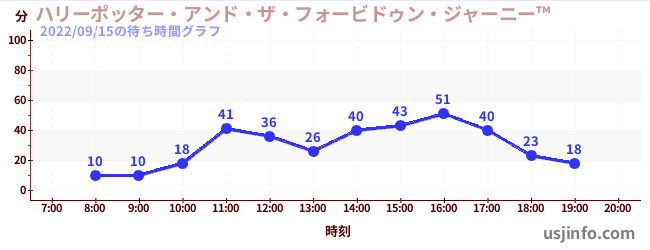 • ハリーポッター・アンド・ザ・フォービドゥン・ジャーニー™$B$N(B2022年09月15日の待ち時間
