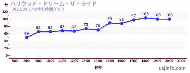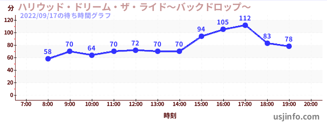 • ハリウッド・ドリーム・ザ・ライド〜バックドロップ〜$B$N(B2022年09月17日の待ち時間