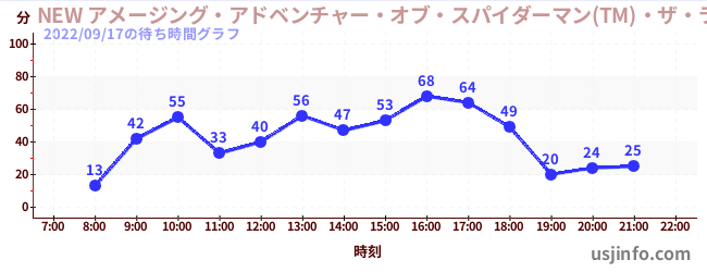 • NEW アメージング・アドベンチャー・オブ・スパイダーマン(TM)・ザ・ライド 4K3D$B$N(B2022年09月17日の待ち時間