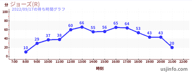 • ジョーズ(R)$B$N(B2022年09月17日の待ち時間