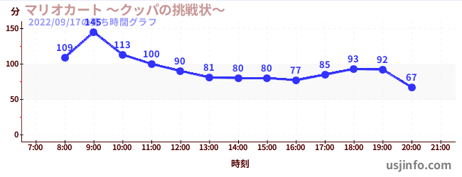 • ミニオン・ハチャメチャ・ライド$B$N(B2022年09月17日の待ち時間
