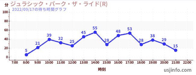 • ジュラシック・パーク・ザ・ライド(R)$B$N(B2022年09月17日の待ち時間