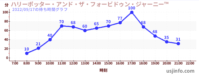 • ハリーポッター・アンド・ザ・フォービドゥン・ジャーニー™$B$N(B2022年09月17日の待ち時間