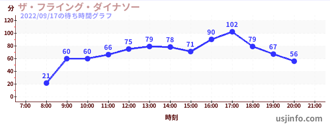 • ザ・フライング・ダイナソー$B$N(B2022年09月17日の待ち時間