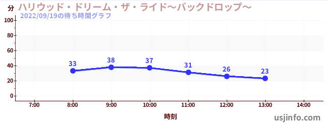 • ハリウッド・ドリーム・ザ・ライド〜バックドロップ〜$B$N(B2022年09月19日の待ち時間