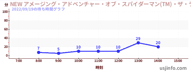 • NEW アメージング・アドベンチャー・オブ・スパイダーマン(TM)・ザ・ライド 4K3D$B$N(B2022年09月19日の待ち時間