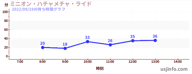 • ミニオン・ハチャメチャ・ライド$B$N(B2022年09月19日の待ち時間