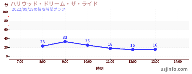 • ハリウッド・ドリーム・ザ・ライド$B$N(B2022年09月19日の待ち時間
