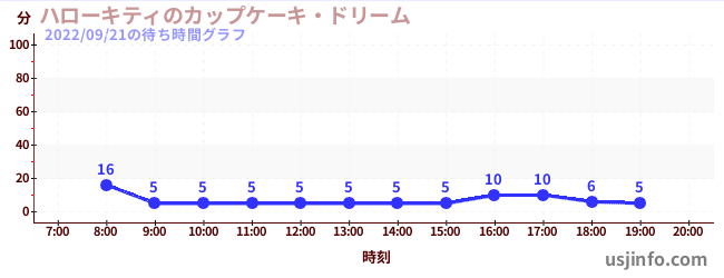 • ハローキティのカップケーキ・ドリーム$B$N(B2022年09月21日の待ち時間
