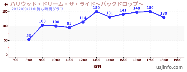 • ハリウッド・ドリーム・ザ・ライド〜バックドロップ〜$B$N(B2022年09月21日の待ち時間