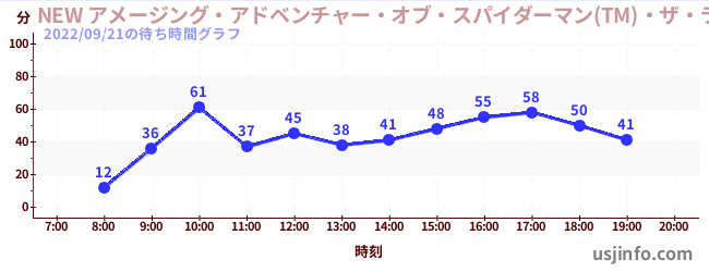 • NEW アメージング・アドベンチャー・オブ・スパイダーマン(TM)・ザ・ライド 4K3D$B$N(B2022年09月21日の待ち時間