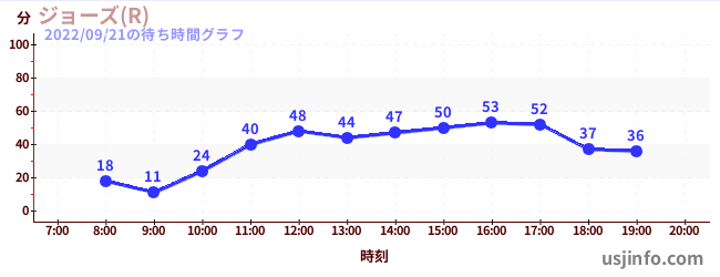 • ジョーズ(R)$B$N(B2022年09月21日の待ち時間