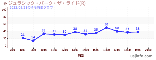 • ジュラシック・パーク・ザ・ライド(R)$B$N(B2022年09月21日の待ち時間