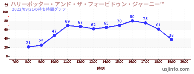 • ハリーポッター・アンド・ザ・フォービドゥン・ジャーニー™$B$N(B2022年09月21日の待ち時間