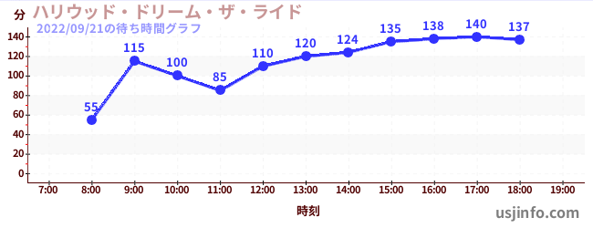 • ハリウッド・ドリーム・ザ・ライド$B$N(B2022年09月21日の待ち時間