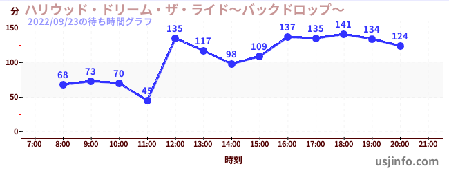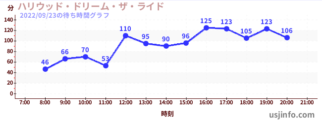 • ハリウッド・ドリーム・ザ・ライド〜バックドロップ〜$B$N(B2022年09月23日の待ち時間