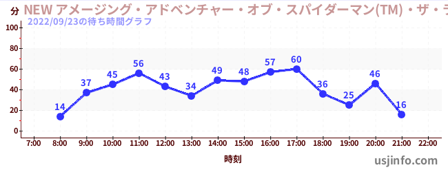 • NEW アメージング・アドベンチャー・オブ・スパイダーマン(TM)・ザ・ライド 4K3D$B$N(B2022年09月23日の待ち時間