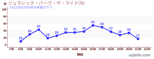 • ジュラシック・パーク・ザ・ライド(R)$B$N(B2022年09月23日の待ち時間