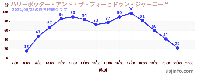 • ハリーポッター・アンド・ザ・フォービドゥン・ジャーニー™$B$N(B2022年09月23日の待ち時間