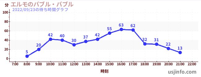 • エルモのバブル・バブル$B$N(B2022年09月23日の待ち時間