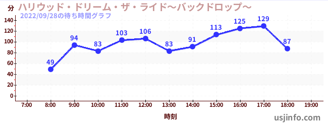 • ハリウッド・ドリーム・ザ・ライド〜バックドロップ〜$B$N(B2022年09月28日の待ち時間