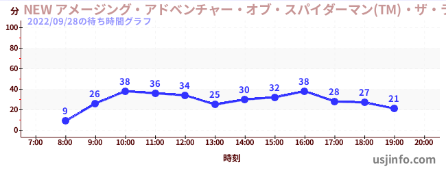 • NEW アメージング・アドベンチャー・オブ・スパイダーマン(TM)・ザ・ライド 4K3D$B$N(B2022年09月28日の待ち時間