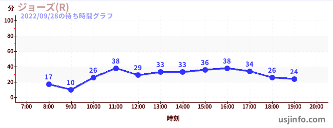 • ジョーズ(R)$B$N(B2022年09月28日の待ち時間