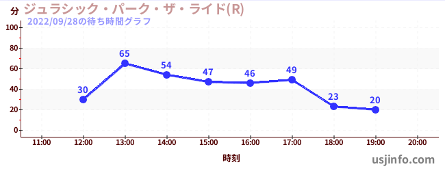 • ジュラシック・パーク・ザ・ライド(R)$B$N(B2022年09月28日の待ち時間