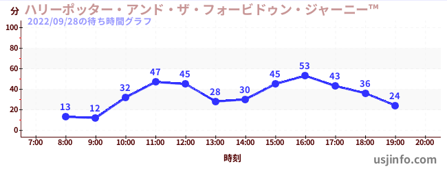 • ハリーポッター・アンド・ザ・フォービドゥン・ジャーニー™$B$N(B2022年09月28日の待ち時間