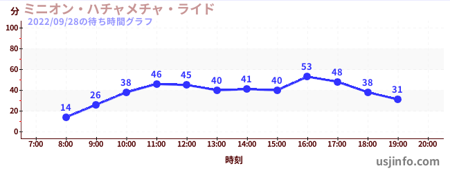 • ミニオン・ハチャメチャ・ライド$B$N(B2022年09月28日の待ち時間