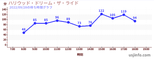 • ハリウッド・ドリーム・ザ・ライド$B$N(B2022年09月28日の待ち時間