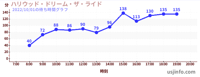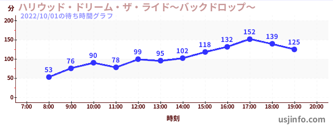 • ハリウッド・ドリーム・ザ・ライド〜バックドロップ〜$B$N(B2022年10月01日の待ち時間