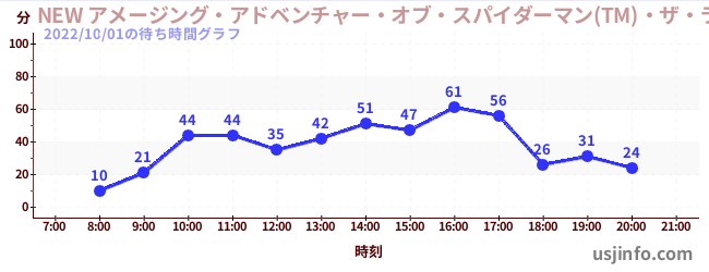 • NEW アメージング・アドベンチャー・オブ・スパイダーマン(TM)・ザ・ライド 4K3D$B$N(B2022年10月01日の待ち時間