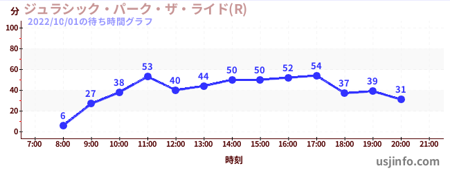 • ジュラシック・パーク・ザ・ライド(R)$B$N(B2022年10月01日の待ち時間