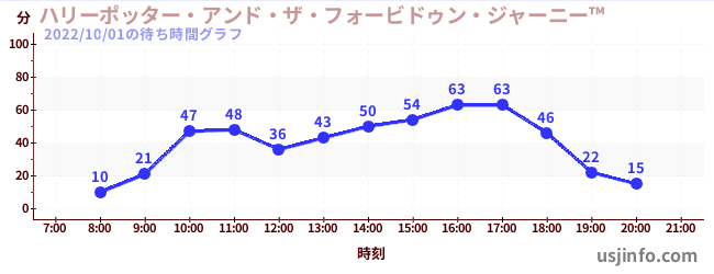 • ハリーポッター・アンド・ザ・フォービドゥン・ジャーニー™$B$N(B2022年10月01日の待ち時間