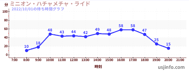 • ミニオン・ハチャメチャ・ライド$B$N(B2022年10月01日の待ち時間